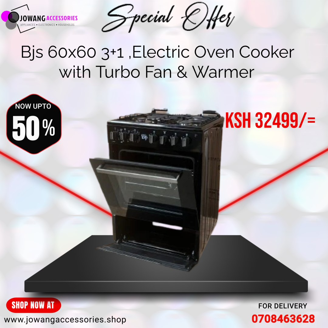 Take control of your kitchen with the BJS 60×60 3+1 Electric Oven Cooker with Turbo Fan. This versatile unit combines the instant control of gas hobs with the consistent baking of a powerful electric oven, all designed with innovative features like the Turbo-FAN and efficient pool burners for superior cooking performance.